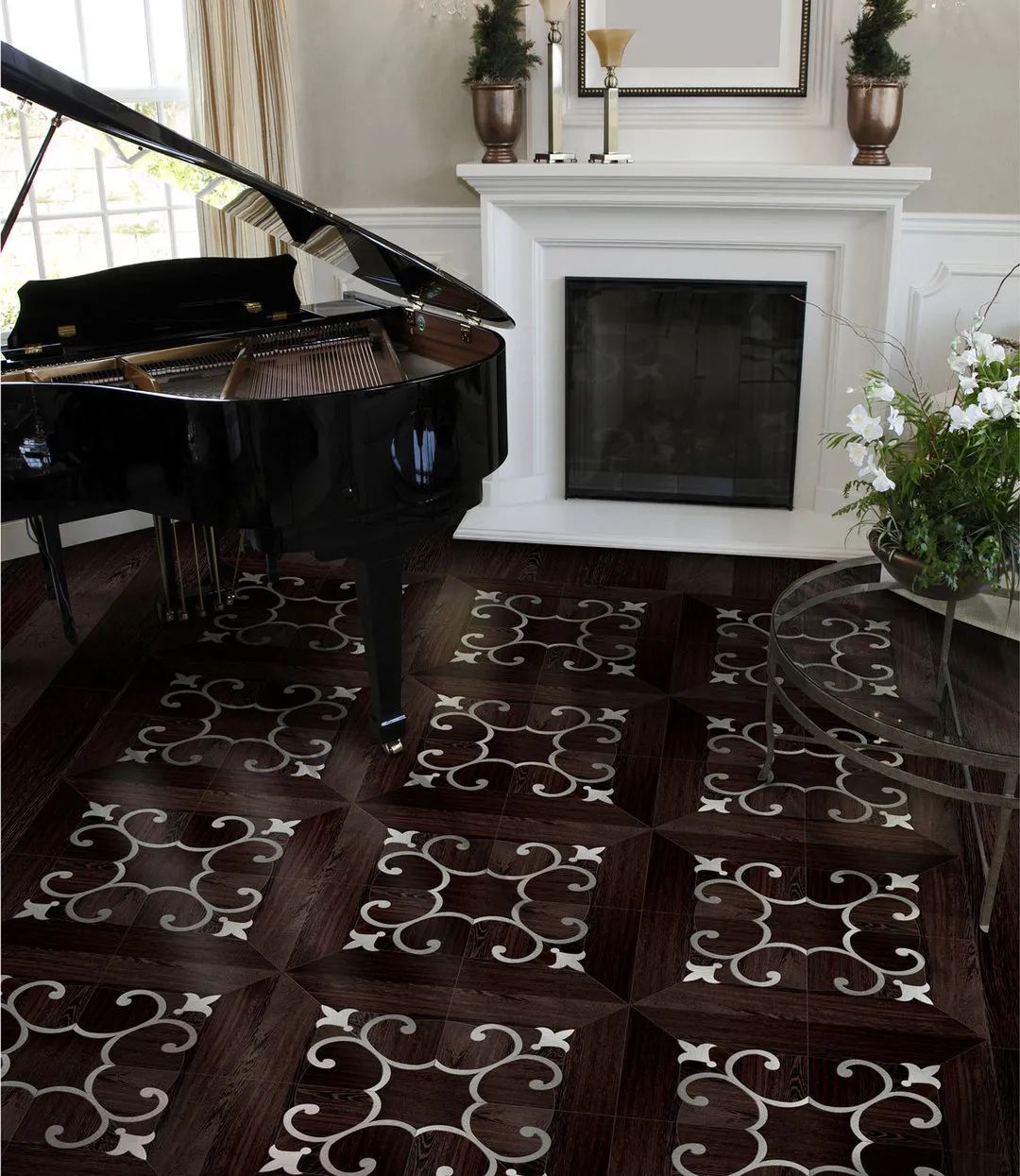 這些鑲嵌裝飾源自金屬和天然大理石,不同材料的組合創(chuàng)造出時尚的幾何設(shè)計和迷人的色彩組合,讓地面擁有更個性和腔調(diào)的別致風(fēng)情。